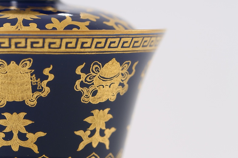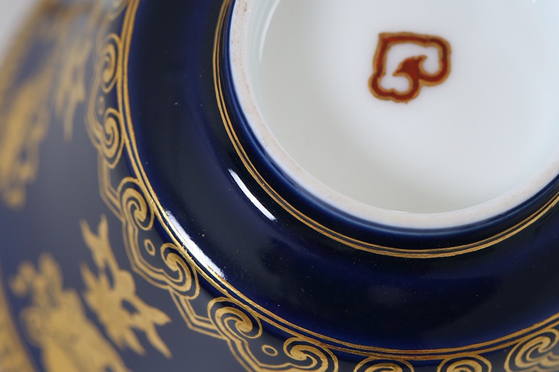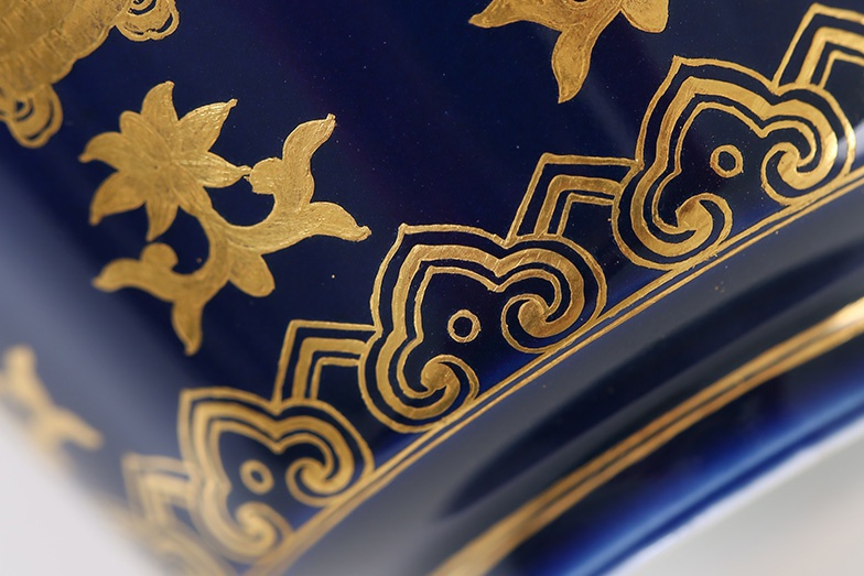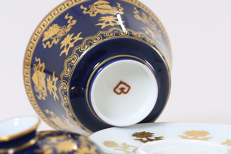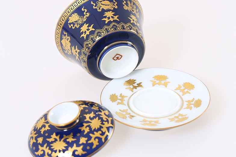 金是24k金研磨的,加入乳香油调和,和1% 比例的油红,我们的金不掺入其他化工材料 ,所以更纯,也不易脱落,如果金出现脱落现象是因为加入了银,如果金越用越黑是因为油红也加多了 。制作瓷器是一分价钱一分货的,原材料是非常重要的 。
