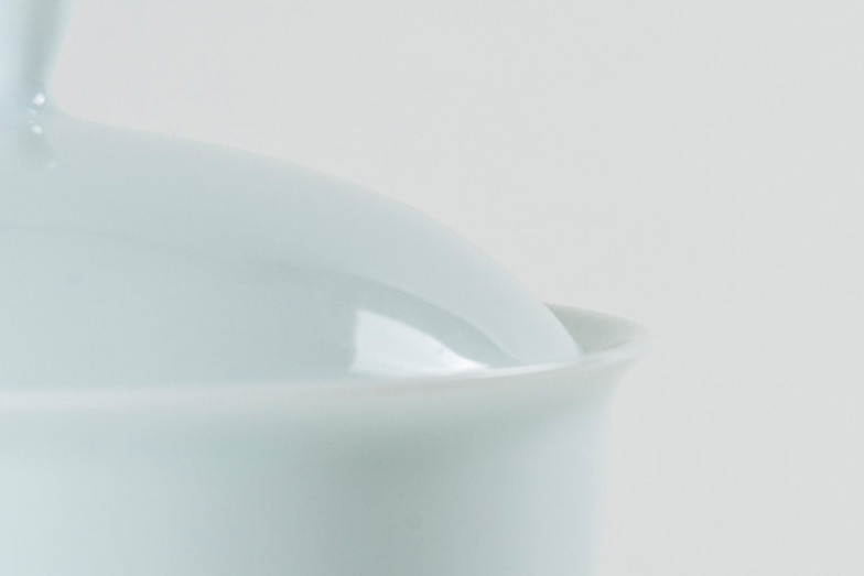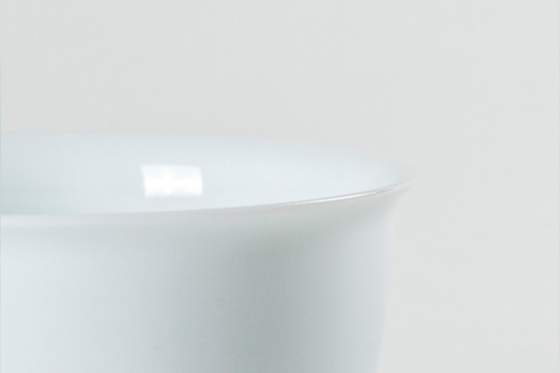 器形设计饱满圆润,碗身阔卓,碗盖弧形拱起,盖碗纽小巧灵动,器形整体类似苹果,取意平安吉祥,碗体如果实坚实圆满,盖纽如蒂,生机灵动。