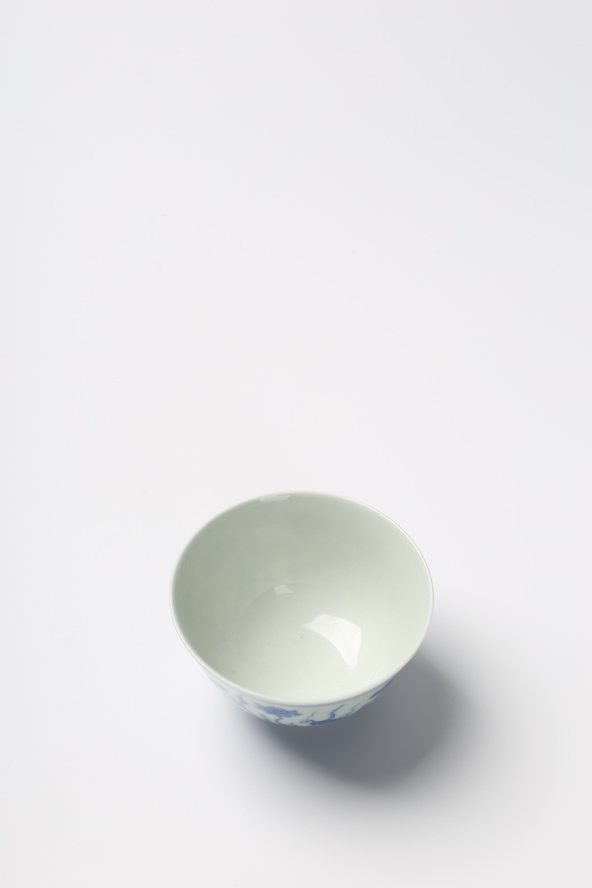 以青花描绘,色泽淡雅净逸;运用双勾画法,