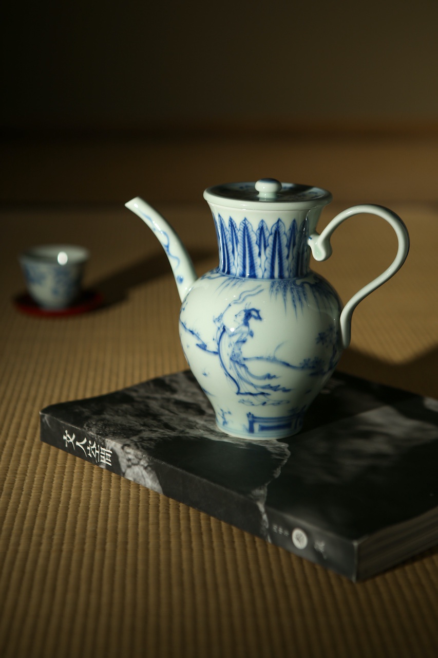 青花发色淡雅,绘笔涂勾挥洒自如,